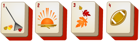 Thanksgiving Mahjong is a fun version of mahjong solitaire, played by clicking tiles in matching pairs. These pairs will then disappear from the majong board for the rest of the game. Match all the mahjong tiles that in their current state have a full vertical side open. If you click on a tile unable to be matched, you will see the mahjong board gray out and you can visually identify which tiles can and cannot be matched at any given time. Use seasonal and flower mahjong tiles shown below to make this process of matching easier, as these tiles can be matched to any in their group.